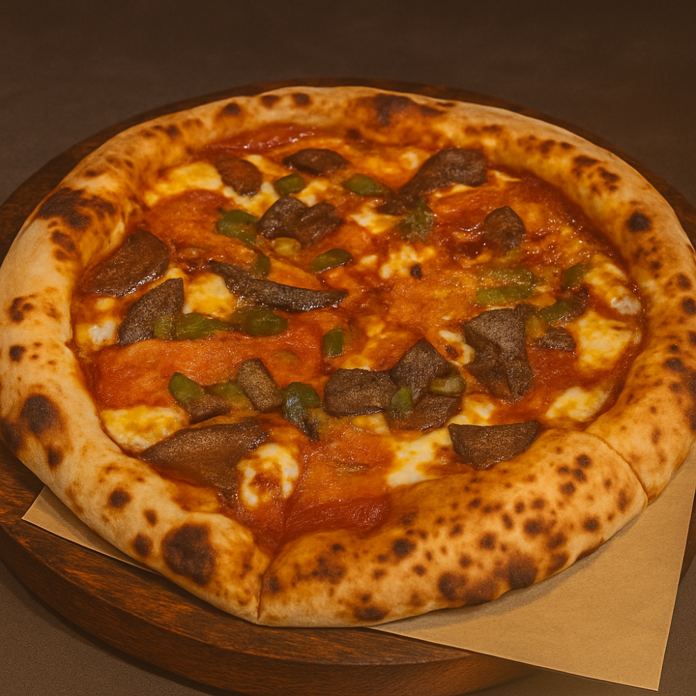 Волшебное тесто, соус диабло BBQ, моцарелла, пепперони, щеки говяжьи томленые, пармезан, халапеньо